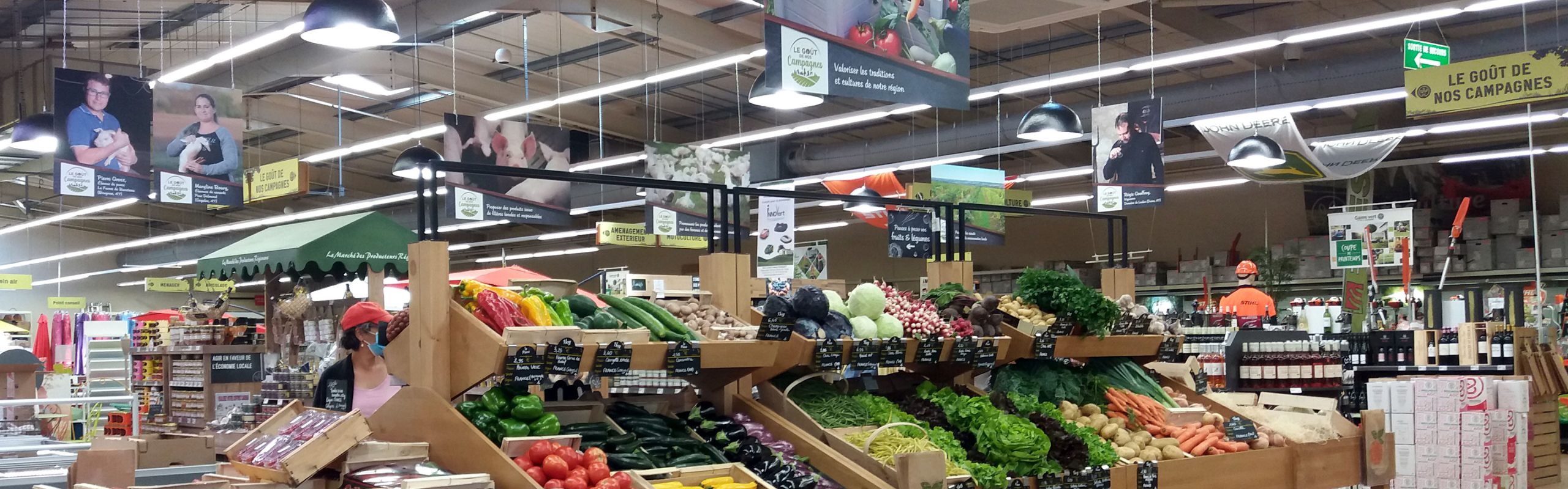 Une signalétique externe et interne au Gamm vert Nature vient signaler aux consommateurs le concept Le Goût de nos Campagnes et nos engagements. Des photos de nos agriculteurs et éleveurs coopérateurs qui vendent leurs produits dans ce magasin viennent habiller le magasin, pour rappeler que derrière chaque produit, on retrouve le savoir-faire de femmes et d’hommes passionnés par leur terroir et leur métier.