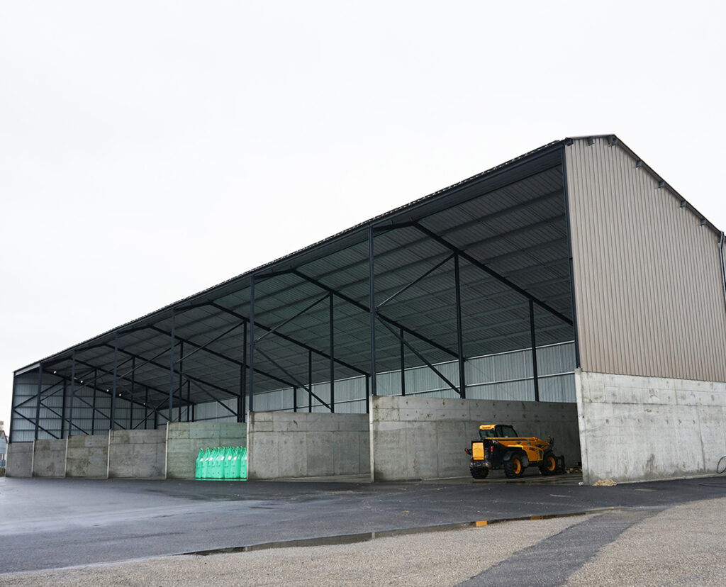 Pour protéger les céréales des intempéries et ainsi préserver leur qualité, nous avons fait le choix d’installer une toiture. Vaste et couvert, le bâtiment peut ainsi jouer son rôle de stockage tampon pour une capacité de 3 500 T. La circulation sur le site est facilitée, les livraisons sont beaucoup plus fluides pour les agriculteurs car le trafic de camions durant les pics d’activité est considérablement diminué.