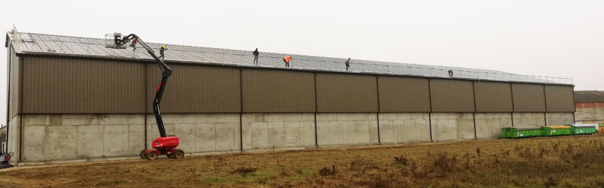 Près de 12 mois de travaux auront été nécessaires. Outre la dalle, la maçonnerie, la charpente métallique, il a fallu concevoir la solution photovoltaïque, préparer les autorisations administratives, faire les demandes de raccordement, installer les panneaux avant la mise en service de la centrale et le raccordement au réseau électrique. De nombreux corps de métiers et fournisseurs ont contribué à mener à bien chaque étape. En interne les équipes des services, Céréales, Investissements, Maintenance, Environnement-Energie, Photovoltaïque ont été largement mobilisées pour mener à bien ce premier projet de production d’énergie photovoltaïque.