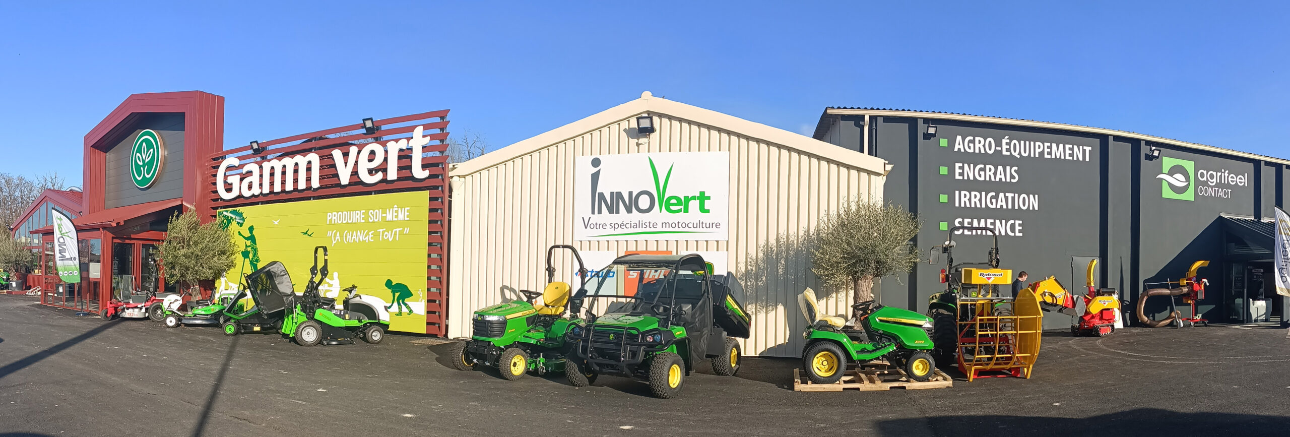 En complément de ces activités, le groupe a créé en 2010 l’enseigne Innovert, spécialisée en motoculture. Castillonnès devient donc le 7ème point de vente Innovert. La surface d’exposition dédiée à l’univers de la motoculture est bien plus importante et met parfaitement en valeur les produits. Experts du matériel de motoculture, nos conseillers vendeurs sont en mesure de renseigner, d’orienter dans le choix du matériel le plus adapté aux besoins de tous les clients expérimentés ou novices.