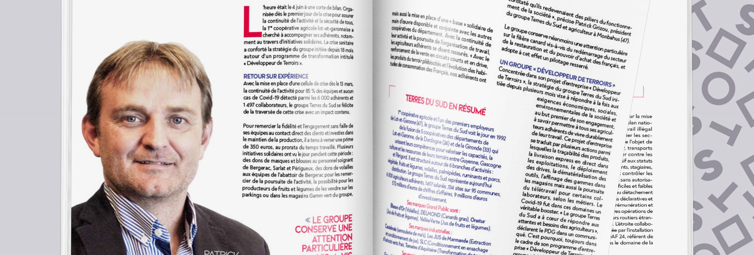 Avec la mise en place d’une cellule de crise dès le 13 mars, la continuité de l’activité pour 85 % des équipes et aucun cas de Covid-19 détecté parmi les 6.000 adhérents et 1.497 collaborateurs, le groupe Terres du Sud se félicite de la traversée de cette crise avec un impact contenu. Pour remercier la fidélité et l’engagement sans faille de ses équipes au contact direct des clients et investies dans le maintien de la production, il a tenu à verser une prime de 350 euros, au prorata du temps travaillé. Plusieurs initiatives solidaires ont vu le jour pendant cette période : des dons de masques et blouses au personnel soignant de Bergerac, Sarlat et Périgueux, des dons de volailles aux équipes de l’abattoir de Bergerac pour les remercier de la poursuite de l’activité, la possibilité pour les producteurs de fruits et légumes de les vendre sur les parkings ou dans les magasins Gamm vert du groupe, mais aussi la mise en place d’une « base » solidaire de main d’oeuvre disponible et conjointe avec les autres coopératives du département.