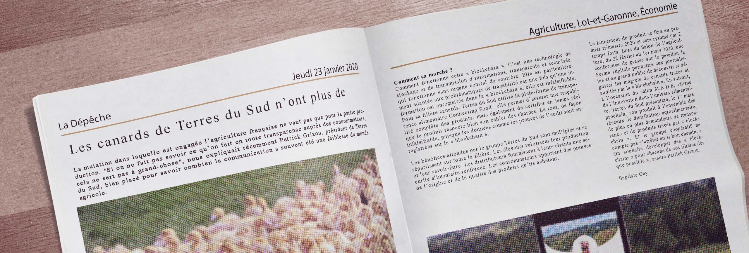 Retrouvez ci-après l'article de presse paru le 23 janvier 2020 dans La Dépêche concernant la traçabilité des magrets de canards Delmond L'Originel.