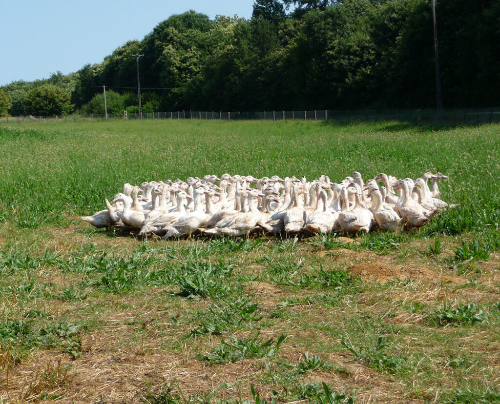 « Le parcours fait 7,60 hectares avec 2 ha de bois, mais il y avait une parcelle sans arbre. Et les canards, l’été, quand il fait bien chaud, en plein soleil, ils n’aiment pas trop ça ! Pour qu’ils puissent bénéficier de l’ensemble du parcours avec de l’ombre, j’ai planté des arbres dès mon installation. » témoigne Raphaël Varachaud, éleveur de palmipèdes gras à Saint-Mathieu (87)