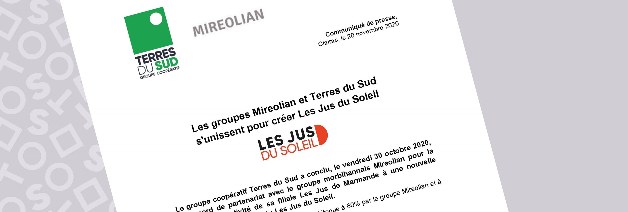 COMMUNIQUÉ DE PRESSE : Les groupes Mireolian et Terres du Sud s'unissent pour créer Les Jus du Soleil.